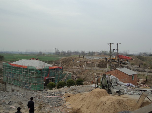 中派站工程是本次肥西縣濱湖泵站更新改造工程的第6標段,工程位于肥西縣上派鎮與嚴店鄉交界處,距合安高速公路約2km。為老站拆除新建項目,是以灌溉為主兼有排澇功能的泵站。為了保證灌區農田春耕、春種用水需要,我公司自開工以來就加大投入、積極準備、合理安排。在所有6個標段中,第一個澆筑底板、第 一個實現結構封頂、第一個開始設備安裝。為工程按期完工打下了良好的基礎。