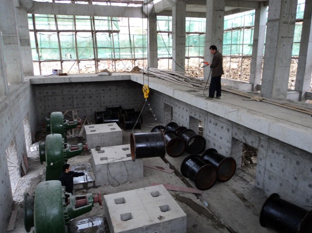 肥西縣濱湖泵站更新改造工程作為國家擴大內需項目之一,由我公司施工的中派站工程自開工以來,我公司就組織精干力量投入現場,保質量、搶進度。在經過四個多月的緊張施工后,目前主體工程已經封頂,設備安裝工作已經開始。