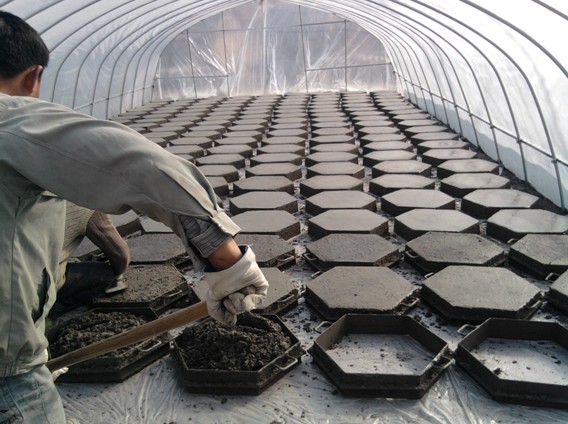 ——將混凝土預制塊搬到塑料大棚內(nèi)養(yǎng)護