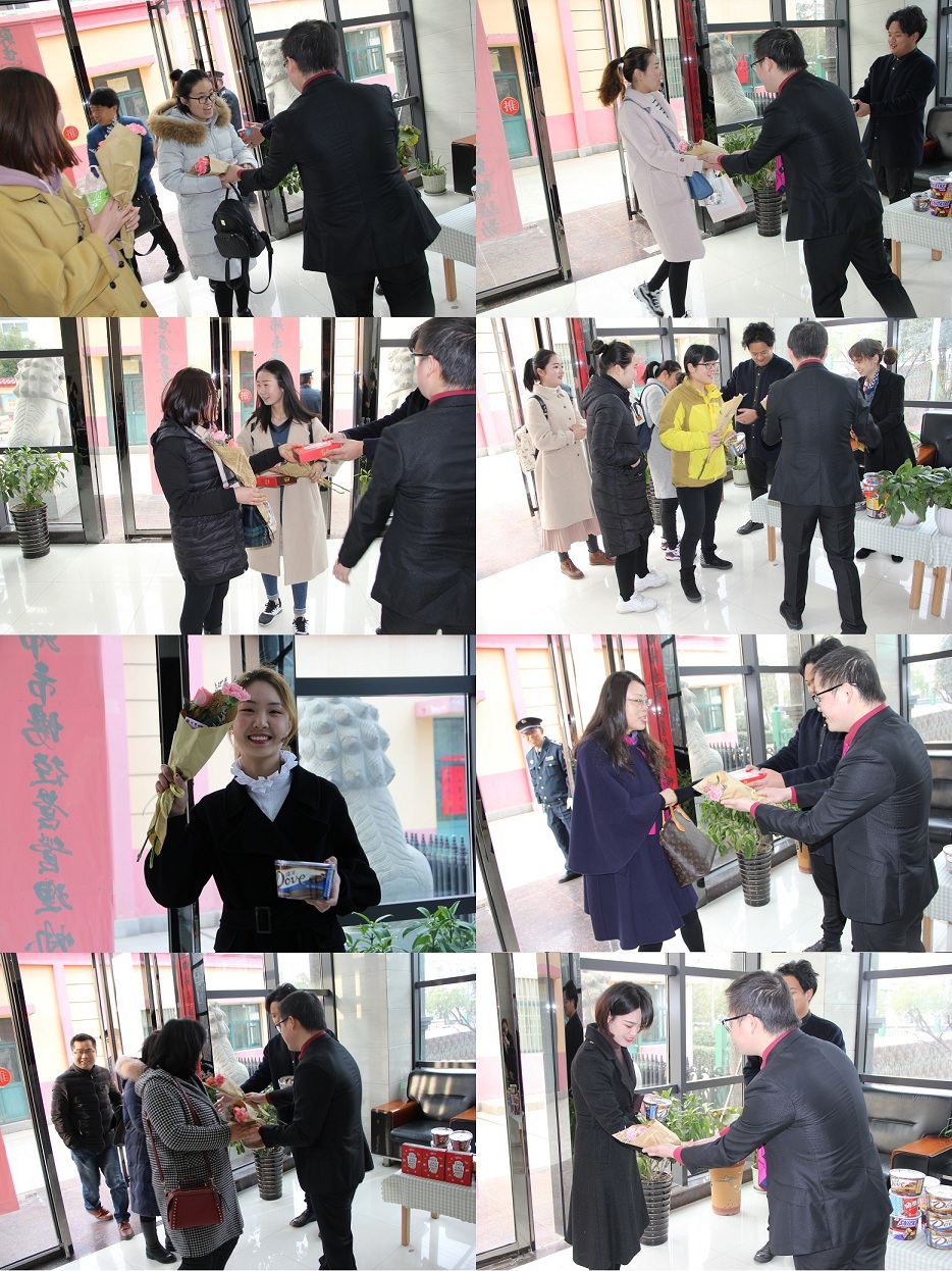 一句溫馨的祝福語“女神,節日快樂!”,一束嬌艷的花朵,一盒甜甜的禮品,一對陽光的帥小伙,迎接著緩緩走進來的聯海女神們。